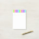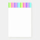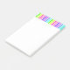 Este cuaderno de notas tiene una frontera rayada vertical colorida en el borde superior con diversas sombras del rosa, azul y verde púrpuras, alternando con blanco.
