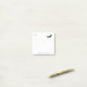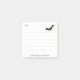 Estas notas pegajosas de Halloween fueron diseñadas con un simple murciélago negro gráfico volando en la esquina superior derecha. La palabra "Nota:" está en la parte superior izquierda. Hay líneas desvanecidas en el fondo blanco. Tu nombre se imprimirá en la parte inferior.
