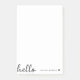 Un diseño de notas post-it mínimo con un guión elegante escrito a mano letra tipograhy de gran tamaño "hola" emparejado con tu propio nombre y un corazón negro simple. Diseñado en un estilo mininalita moderno en blanco y negro depurado. El regalo o accesorio personalizado perfecto para cualquier época del año!