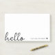 Un diseño de notas post-it mínimo con un guión elegante escrito a mano letra tipograhy de gran tamaño "hola" emparejado con tu propio nombre y un corazón negro simple. Diseñado en un estilo mininalita moderno en blanco y negro depurado. El regalo o accesorio personalizado perfecto para cualquier época del año!