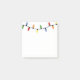 Post-it-Notes mostrados en blanco con una impresión festiva de luces de vacaciones.