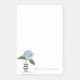 Estas notas adhesivas personalizadas presentan una flor de hydrangea azul original dibujada a mano con follaje en un jarrón rayado de azul marino. Personalice con su nombre o cualquier línea de texto. Perfecto para su papelería personal para su oficina o para regalar.