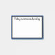 Diseñe sus propias notas Post-it con palabras, mensajes, su logotipo y casi de la manera que desee. Estas notas Post-it personalizadas son personalizados impresas para usted y hacen grandes regalos para todos en su lista. Cuando tu mente esté llena de tareas pendientes, manténgalo junto con un panel de notas Post-it® del personalizado 3M. Anote memos urgentes, listas, o una nota dulce a alguien especial en estas notas Post-it personalizadas con impresión personalizado. Diseñe sus propias notas Post-it con palabras, mensajes, su logotipo y casi de la manera que desee.