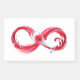 Símbolo infinito de flujo continuo de vino tinto vertiendo en vidrio de vidrio sobre fondo blanco.