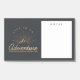 Notas postorientativas al paisaje con un ilustracion de color dorado sobre un fondo gris negro. Diseñado con un ilustracion de montaña con los rayos de sol brillando hacia afuera desde atrás. La tipografía dice: La vida es una aventura explorando el descubrimiento de los sueños.
