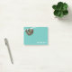 Una nota de post-it con un fondo verde azulado que puede cambiarse a cualquier color, un divertido dibujo de pereza personalizado y un nombre personalizado.