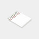 Esta libreta de notas adhesivas tiene un diseño moderno de mediados de siglo de líneas atómicas con "plumas" en ambos extremos y un contorno alrededor de cada una.