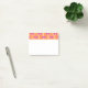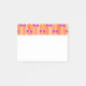 Este bloc de notas Post-It tiene un diseño moderno de mediados de siglo de líneas verticales naranjas con rectángulos rosados arriba repetidos a lo largo del diseño.