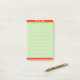 Elegantes notas Post-it rayadas con lista de tareas personalizable sobre fondo de color verde.