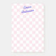 Notas adhesivas con tu nombre en una fuente azul de estilo retro sobre un patrón de tablero de ajedrez rosa pálido y blanco.