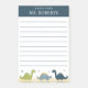 Notas adhesivas con tema de dinosaurios para maestros con plantilla de nombre sobre fondo azul. Un bloc de papel de escritura personalizado y adorable con líneas y estrellas de acuarela, triceratops, estegosaurio y braquiosaurio. Este bloc de notas adhesivas con tema de dinosaurios sería un regalo considerado para la apreciación de los maestros o papelería divertida para el regreso a clases para cuidadores de guardería, maestros de preescolar o maestros de jardín de infantes.