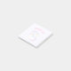 Pequeñas notas pegajosas cuadradas con un adorable unicornio blanco con tonos verde pastel, violeta, amarillo y rosado rizado y un cuento. Esta mágica criatura está tumbada durmiendo pacíficamente con una estrella fugaz de color arcoiris volando sobre su cabeza. El texto dice "mágico" en una fuente de moda rosa. Una superposición semitransparente colocada sobre la parte superior para dar un aspecto desvanecido al diseño.