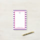 Este cuaderno de 4 x 6 con fondo de rayas moradas y blancas con un borde rosado y una primera parte morada en el centro superior y nombre completo en el fondo es perfecto para cualquier mujer que conozcas. Con su divertido patrón rayado es clásico y preppy y se vería maravilloso en cualquier escritorio y haría un regalo perfecto para amigos, compañeros de trabajo o familia.