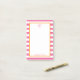 Este cuaderno de 4 x 6 con un fondo rayado rosa y blanco con un borde naranja y una primera inicial rosada en el centro superior y el nombre completo en la parte inferior es perfecto para cualquier mujer que conozcas. Con su divertido patrón rayado es clásico y preppy y se vería maravilloso en cualquier escritorio y haría un regalo perfecto para amigos, compañeros de trabajo o familia.