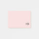 Un rosa moderno y ondulado con una nota de monograma inicial negro post-it es femenino.