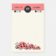 Personaliza este post que nota, con un nombre e iniciales - monograma. Diseñado con tres lindos pájaros, corazones de amor y puntos. Respaldo de crema, rojo, verde y negro.