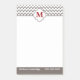 Un patrón clásico de chevron en gris carbón y blanco decora la parte superior de este post que nota, con tu monograma de rojo brillante en un banner blanco de línea gris. La parte inferior de la nota tiene un borde gris coincidente con el texto personalizado en blanco. Atractivo, y muy profesional buscando negocios o casa.