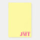 Notas Post-it® Monograma simple amarillo claro y rosa brillante