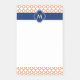 patrón de quatrefoil naranja y membrete azul real con monograma. Un patrón sencillo y elegante. El fondo es blanco.