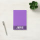 Papel púrpura pegajoso personalizado con tu nombre en grandes letras blancas en negrita en la parte inferior del bloc de notas contra un fondo de rico cheque de búfalo púrpura de lavanda. Carta personalizada con un detalle de verificación de búfalo morado, nombre en grandes letras en negrita y un fuerte tono de lavanda que hará que tus notas y recordatorios sean difíciles de perder!