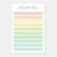 Notas personalizadas en blanco con cajas de colores en tonos pastel que van desde melocotón hasta amarillo y verde hasta turquesa para sus listas o notas. Añade tu nombre en un guión de caligrafía turquesa.