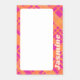 Notas pegajosas con un patrón de plaid en naranja brillante y magenta, y tu nombre personalizado.