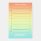 Las notas posteriores personalizadas se incluyen con una lista práctica, numerada para hacer con casillas de verificación para ver fácilmente qué tareas o tareas ha completado. En la parte inferior, ¡todo es satisfactorio! en letra de escritura a mano bonito. Personalizar agregando su nombre. El fondo de la lista de tareas pendientes presenta una sombrilla tropical en color rosa naranja, amarillo, cal y turquesa.