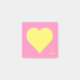 Un divertido y moderno de notas con atrevido gráfico amarillo en el corazón sobre un espléndido fondo rosa caliente. Personalice con su nombre o elección diferente de color de fondo y texto. Añade puntos de color a tu espacio de trabajo o casa con estas notas, perfectas para mensajes rápidos, recordatorios y notas a ti mismo!
