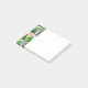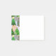 Esta libreta de notas adhesivas tiene un diseño de árboles de Navidad en varios tonos de verde, rosa, plata y dorado con diferentes decoraciones.