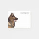 Post alsaciano personalizado que nota que presenta a un espléndido pastor alemán de pelo largo sobre un fondo blanco clásico que puede cambiarse a cualquier color, y su nombre en un sencillo y moderno tipo de letra negro.