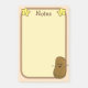 Notas adorables con una patata marrón kawaii de dibujos animados en la esquina inferior derecha. En la parte superior de las notas hay dos estrellas amarillas felices a ambos lados de la palabra Notas que está en color marrón. El área para escribir tus notas es de un amarillo pastel con un borde marrón claro pastel. El fondo es un naranja pastel con pequeños lunares blancos. Ideal para agregar a los útiles escolares de tus hijos.