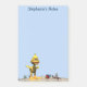 Bájate en importantes recordatorios en estas notas posteadas que incluyen un lindo pato personalizado amarillo jugando en la playa con un lindo cangrejo personalizado. Tienen arena, un hermoso cielo azul y una bola de playa para hacer su día perfecto. La frase "Diversión en el Sol" puede cambiarse o eliminarse fácilmente. El nombre de la parte superior también se puede personalizar.