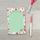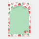La libreta adhesiva perfecta para el verano con un patrón jugoso de fresas rojas y rosadas. Agrega tu nombre en texto curvo en la parte superior de un arco verde a juego, con un par de fresas anidadas en una esquina, una roja y una rosa.