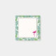 Notas pegajosas cuadradas con un patrón de hojas tropicales verdes y un marco blanco con un borde negro sobre la parte superior. Un ilustracion flamingo rosa aporta un toque de fantasía.