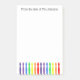 Este gran y brillante bloc de notas ha sido diseñado para un profesor de arte y puede ser personalizado con cualquier nombre. Hay una hilera de artistas de colores vivos pintando pinceles en la parte inferior, y en la parte superior las palabras: Desde el escritorio de [tu nombre]. El fondo es blanco para la fácil lectura de las notas.