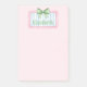 This cute Post-It notepad features a pink frame with blue and white stripes and topped with a preppy green and white gingham plaid bow. Personalize with your choice of name or special text. Fun for personalized gift bags and party favors.
