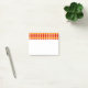Este cuaderno Post-It tiene un diseño Art Deco de una manta con líneas gruesas y delgadas en rojo, naranja y amarillo.