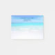 Boda post-it con una playa tropical de arena. A lo lejos, un magnífico mar turquesa de aguas cristalinas acaricia una playa de arena. Un cielo azul brillante en el fondo.