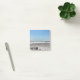 Publica notas que muestran un cielo azul, océano y playa de arena.