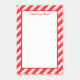 Stickies de encargo con las letras rojas de la escritura en un modelo diagonal de rayas rojas y blancas.