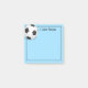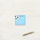 Post-it-Notes mostrados en un color azul cielo con una huella deportiva de fútbol.