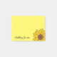 Las Poste-él-Notas mostradas en amarillo con un girasol lindo imprimen con un nombre de encargo. Modifique este artículo para requisitos particulares y cambie el nombre el suyo, cambie el color, texto, fuente si usted desea.