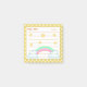 ¿Buscando una manera bonita y creativa de hacer sus notas más alegres y divertidas? Si es así, debe desproteger el nuevo cuadro con un marco blanco que tenga bordes de vieira y un efecto de sombra de caída. En el interior del marco, las bonitas estrellas amarillas y las nubes con arcos de lluvia dan un sentido de luminosidad y tranquilidad a sus notas. ¡Y hay más! Las líneas para escribir sus notas son amarillas, así como el espacio para poner la fecha y su nombre, que se puede personalizar. Con un fondo amarillo con puntos de polka blancos, el es perfecto para anotar recordatorios, listas de tareas pendientes, números de teléfono o incluso un mensaje romántico para esa persona especial. Entonces, ¿por qué seguir usando notas aburridas y llanas cuando se puede tener un Post-it tan hermoso y encantador? Elige el tuyo ahora y haz que tus notas sean más coloridas y divertidas!