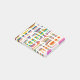 Estas notas Post-It tienen un diseño moderno de rectángulos a mediados de siglo sobre rayas de colores.