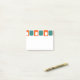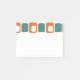 Este bloc de notas Post-It tiene un diseño moderno de mediados de siglo de repeticiones de rectángulos naranjas con rectángulos blancos dentro alternando con rectángulos verde azulados.