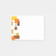 Este bloc de notas post-It tiene un diseño moderno de rectángulos y líneas en los colores de la década de 1970.