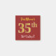 Este sencillo diseño de notas muestra un mensaje como "¡Cumpleaños 35 de FirstName!", con el "35" con un aspecto falso/imitación de color dorado, en un fondo de color rojo. El nombre se puede personalizar. Notas como estas podrían ser usadas como decoraciones en una fiesta de cumpleaños para alguien que está celebrando su 35º cumpleaños. [~Z0000173]