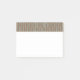 Este bloc de notas Post-It tiene un diseño geométrico de una especie de ovalos de punta plana que se repite a lo largo del diseño en azul pálido sobre un campo de color marrón.