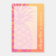 Notas pegajosas postit con una piña rosa caliente y tu nombre o texto personalizado alineados verticalmente a la derecha en un fondo de gradiente amarillo a naranja.