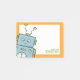 Diseño divertido e íntimo ideal para los niños y los jóvenes de corazón. Este conjunto brillante y vibrante de notas pegajosas presenta un robot verde y azul feliz sobre un fondo naranja y puede ser personalizado con el nombre de su hijo y el texto adicional. Mucho espacio para escribir notas. Personalizar para cambiar el color de fondo. Diseño © Lisa Marie Robinson. Todos los derechos reservados, es ilegal usar o duplicar esto, o cualquiera de nuestras imágenes, sin permiso escrito.